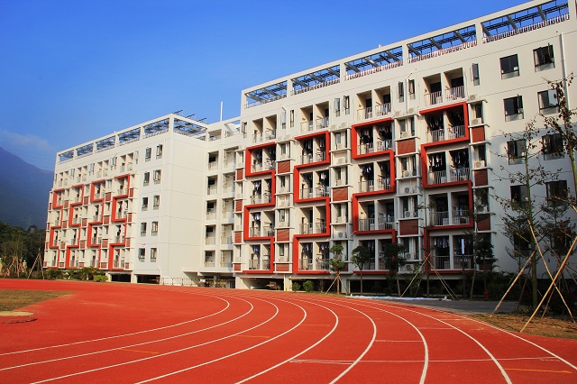 學校教學、運動及生活三大區(qū)域劃分合理,相對獨立。學校實行全寄宿封閉式精致管理,現(xiàn)有5棟學生宿舍樓;擁有雙層體育館,400米8道標準田徑場,各類體育場地面積共計24000平方米;擁有高端報告廳、音樂廳、會議廳、千人會堂、面朝大海的美術(shù)樓、音樂樓、信息樓和2000平方米藏書豐富的圖書館,圖書10萬余冊;擁有3個深圳市A類師生食堂,菜式品種豐富,營養(yǎng)可口,安全放心,可供3000人同時用餐。