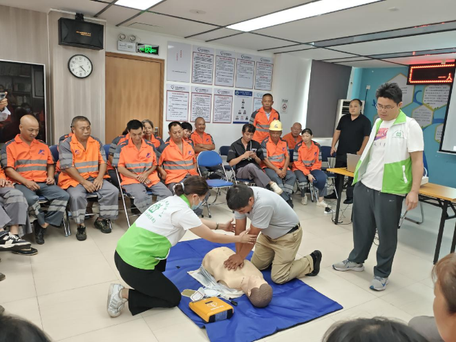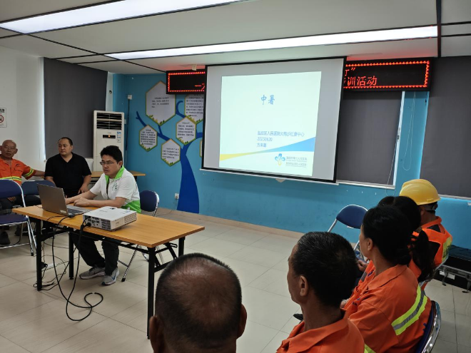 為切實(shí)提升一線環(huán)衛(wèi)工人的應(yīng)急救護(hù)能力,保障其戶外作業(yè)安全,筑牢社區(qū)安全防線,近日,在大梅沙社區(qū)黨委的指導(dǎo)下,大梅沙社區(qū)黨群服務(wù)中心聯(lián)合大梅沙社區(qū)健康服務(wù)中心組織開展了一場面向轄區(qū)環(huán)衛(wèi)工人的專項(xiàng)急救知識(shí)培訓(xùn)。本次培訓(xùn)是深化“我為群眾辦實(shí)事”實(shí)踐活動(dòng)、推動(dòng)黨建引領(lǐng)基層治理精細(xì)化的具體體現(xiàn),邀請(qǐng)到大梅沙社康方來喜醫(yī)生授課,共吸引50余名轄區(qū)環(huán)衛(wèi)工作人員到場參加。