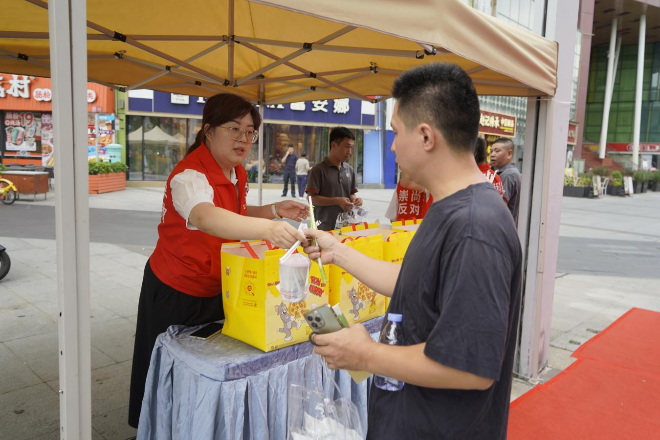 本次活動聚焦一線快遞員、外賣配送員等高流動性職業(yè)群體,通過在暖鋒驛站前設(shè)立禁毒宣傳攤位、展示仿真毒品模型、發(fā)放宣傳手冊等方式,向騎士們科普毒品種類、偽裝手段以及識別防范技巧。活動現(xiàn)場,工作人員重點講解了近年來高發(fā)的“郵票”“依托咪酯”“笑氣”等新型偽裝毒品,提醒大家在日常收派件過程中提高警惕,防止被不法分子利用運輸涉毒物品。同時,工作人員還貼心地為在場騎士送上冷飲奶茶,以“清涼”傳遞“無毒”理念,表達對一線工作者的關(guān)愛與尊重,贏得了大家的一致好評。