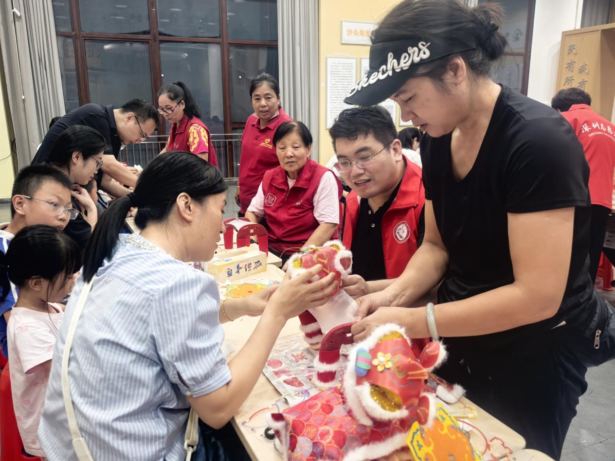 活動(dòng)以醒獅文化講解開篇,工作人員向親子家庭介紹醒獅的吉祥寓意(象征勇敢、活力)、色彩內(nèi)涵(紅為喜慶、黃顯尊貴)及民俗背景。手工環(huán)節(jié)中,工作人員分發(fā)含彩色卡紙、毛絨球、流蘇等的材料包,老師分步演示制作,現(xiàn)場(chǎng)親子協(xié)作默契:孩子剪裁花紋,家長(zhǎng)耐心指導(dǎo);有的家庭分工明確,父母配合固定結(jié)構(gòu)、裝飾細(xì)節(jié);部分孩子發(fā)揮創(chuàng)意,給醒獅加貼紙、系鈴鐺。遇 “膠水粘不牢”“剪歪輪廓” 等問題,家長(zhǎng)陪孩子調(diào)整,志愿者老師也穿梭在各組家庭間,手把手指導(dǎo)技巧,及時(shí)提供幫助,確保每個(gè)孩子都能體驗(yàn)到動(dòng)手的樂趣。