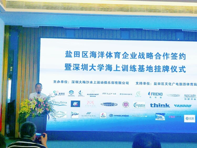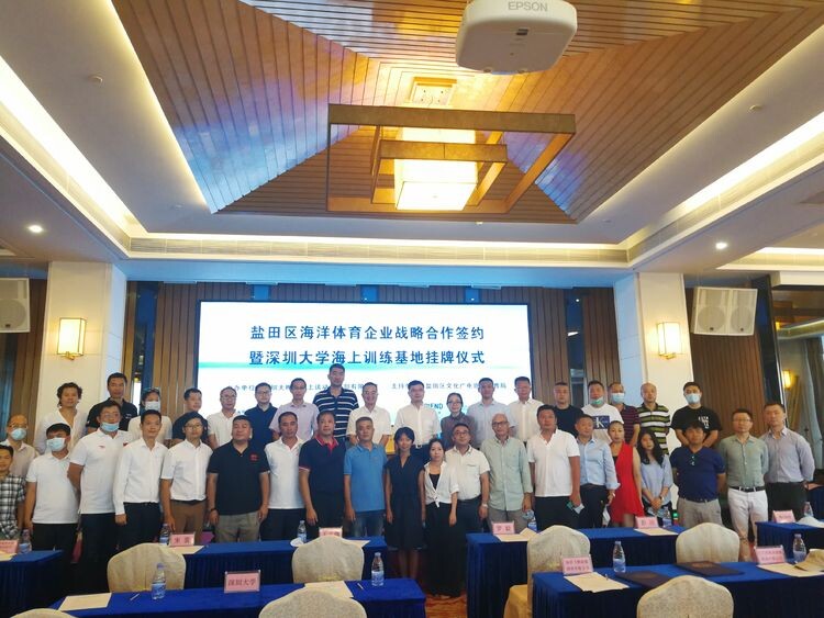 2020年6月30日下午,由深圳大梅沙水上運動俱樂部有限公司主辦,鹽田區(qū)文化廣電旅游體育局作為支持單位的鹽田區(qū)海洋體育企業(yè)戰(zhàn)略合作簽約暨深圳大學海上訓練基地掛牌儀式,在大梅沙國際水上運動中心舉辦。