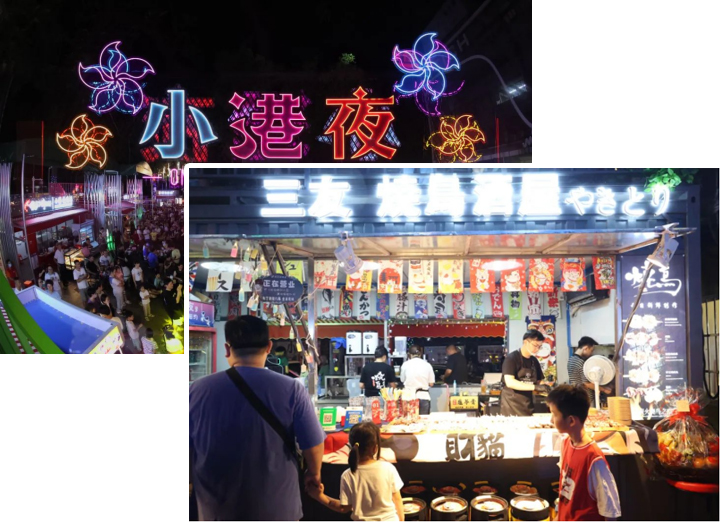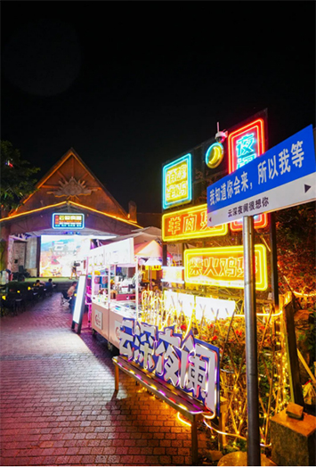 40多個創(chuàng)意集裝箱林立各色霓虹燈招牌閃爍,行走在這里復(fù)古港風(fēng)Chic氛圍拉滿,讓人一秒穿越入“港”10000㎡的港風(fēng)狂歡地近50家、200余種港味美食港臺金曲、港風(fēng)演藝日夜嗨不停咖喱魚蛋、港味燒鳥絲襪奶茶、港式燒臘吃貨的夢想大集結(jié)帶你一秒Get逛吃的樂趣