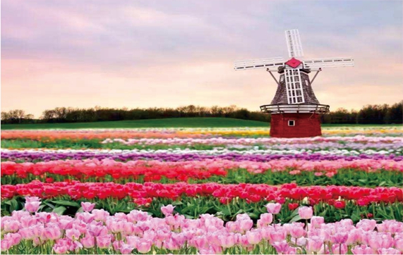 荷蘭這個風(fēng)車與郁金香相遇的國度給了作者無限的想象力及藝術(shù)簽賞力,《詩書畫影》中借用了后印象派點彩畫法描繪了作者作為一個跨文化旅者的見聞與感想。讀者在觀看菜頻“詩歌墻”、哥本哈根安徒生雕塑、巴黎艾菲爾鐵塔、佛羅倫薩古橋、希臘千年榆樹、埃及金宇塔等意味深長的文字符號時或能感受到“仰望星空”時的動感。
