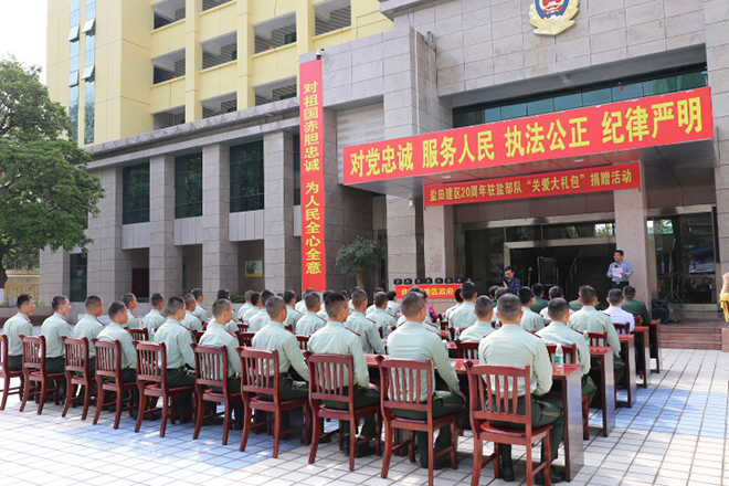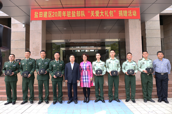 在鹽田建區(qū)20周年之際,2018年3月30日,駐鹽部隊官兵“關愛禮包”贈送活動在邊防六支隊四大隊十三中隊院內舉行。據悉,此次活動是鹽田在建區(qū)20周年之際,推出的系列慶?;顒又?,旨在讓轄區(qū)廣大人民和部隊官兵共享鹽田發(fā)展成果,激勵全區(qū)人民不忘初心、牢記使命、高舉旗幟、繼續(xù)前行。副區(qū)長喬宏彬代表鹽田區(qū)委區(qū)政府向駐鹽部隊官兵贈送了1298份“關愛禮包”。