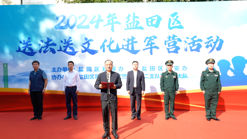 在12月4日國家憲法日這個特殊莊重的日子,鹽田區(qū)委常委、區(qū)人武部部長王貴喜,鹽田區(qū)副區(qū)長周建軍率隊一行赴武警某部,隆重舉辦2024年鹽田區(qū)送法送文化進軍營活動,讓書香學法之風飄進軍營,彌漫軍營。