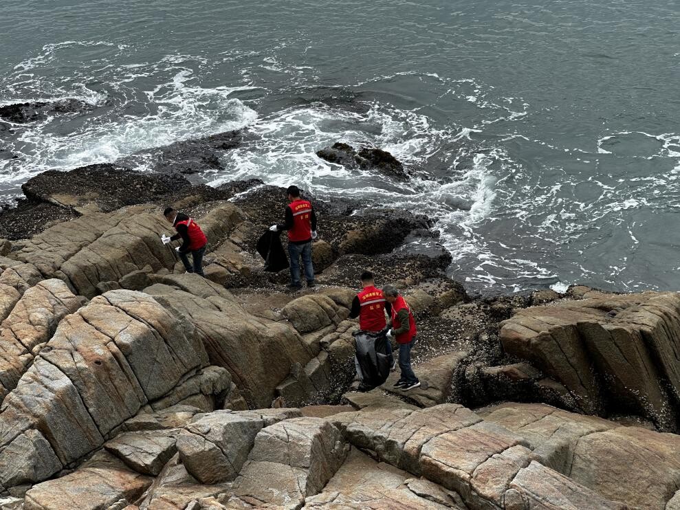 活動(dòng)中,大家手持環(huán)保袋等工具來到棧道上、海岸邊,不畏冷風(fēng),互相配合,對(duì)棧道上游客隨手丟棄的垃圾、海岸線上漂流廢棄物等進(jìn)行地毯式清理,并深入到海岸的礁石區(qū)附近,清理一些平時(shí)環(huán)衛(wèi)工人難以清除的雜物。