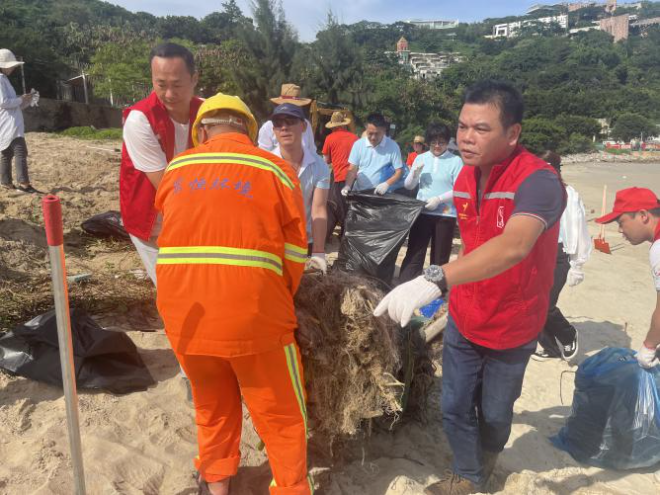 近幾個(gè)星期的連場(chǎng)暴雨,使大量的海洋垃圾沖刷到梅沙的沙灘上,給大梅沙海灘造成了一定程度的污染。為此,6月20日下午,梅沙街道退役軍人服務(wù)站、梅沙街道紅星海洋環(huán)保隊(duì)聯(lián)合轄區(qū)內(nèi)的濱海社區(qū)工作站、駐梅部隊(duì)、洲際酒店等相關(guān)單位,共出動(dòng)60余人,開(kāi)展了一次清潔沙灘的行動(dòng)。