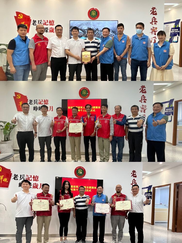 5月19日下午,沙頭角街道退役軍人服務(wù)站舉行退役軍人紅星志愿服務(wù)隊“示范崗”揭牌及頒獎儀式。鹽田區(qū)退役軍人事務(wù)局副局長王偉東,區(qū)退役軍人服務(wù)中心主任盧偉,沙頭角街道黨工委委員、武裝部部長、應(yīng)急管理辦公室主任蔣哲,退役軍人服務(wù)站負(fù)責(zé)人趙正軍以及轄區(qū)退役軍人代表等出席儀式。