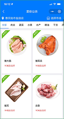 鹽田區(qū)智慧菜籃子以數(shù)字化賦能,由市場監(jiān)管部門督查監(jiān)管,通過在農(nóng)貿(mào)市場檔位上安裝視頻監(jiān)控、接入智慧計量數(shù)據(jù),引入市場檢測數(shù)據(jù),匯總智慧化數(shù)據(jù)和視頻,形成農(nóng)貿(mào)市場運行監(jiān)測大數(shù)據(jù)平臺。讓檔鋪可看,菜品可查,菜源可溯,解決現(xiàn)有商業(yè)買菜平臺看圖下單、不可溯源、菜價不一、質(zhì)量問題等困境。讓市民通過鹽田智慧菜籃子小程序足不出戶就可輕松掌握鹽田農(nóng)貿(mào)市場菜籃子供應(yīng)情況和食品安全資訊,享受線上逛市場買菜;讓經(jīng)營者受到隨時的監(jiān)督,同時緊跟電商時代步伐,使“煙火氣”通過互聯(lián)網(wǎng)連接千家萬戶。