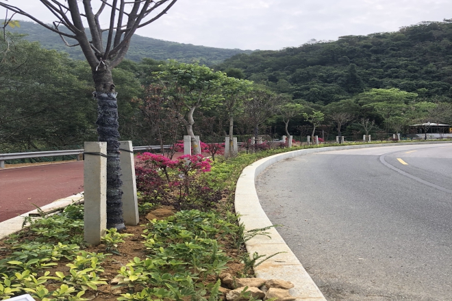 盤山公路綠道工程位于盤山公路鹽田區(qū)段,全長(zhǎng)3.6公里。施工內(nèi)容為盤上公里沿路一側(cè)新建綠道,沿路種植苗木。新建標(biāo)示牌及三個(gè)休息平臺(tái)、修復(fù)水溝蓋板等。