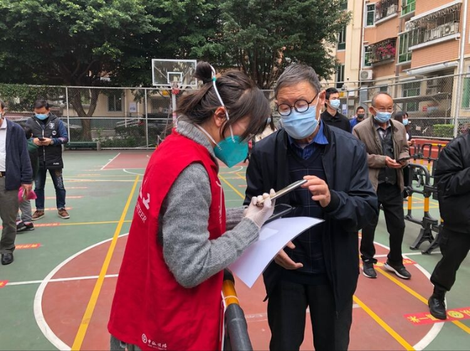 面對突如其來的疫情,多方組織聞令而動,迅速推進(jìn)組織聯(lián)結(jié)、力量聯(lián)動。市、區(qū)領(lǐng)導(dǎo)現(xiàn)場督導(dǎo),區(qū)發(fā)改局、政數(shù)局、街道掛點領(lǐng)導(dǎo)和部門迅速下沉社區(qū),協(xié)助開展居民登記、測量體溫、現(xiàn)場指引、秩序維護(hù)等工作。省人民醫(yī)院、惠州醫(yī)院調(diào)配醫(yī)護(hù)人員、區(qū)教育局調(diào)配老師、公安調(diào)配警力,多方支持,“天使白”“橄欖綠”“守護(hù)藍(lán)”“志愿紅”等各方力量在黨旗下集結(jié),描繪出團(tuán)結(jié)抗疫的多彩畫卷。