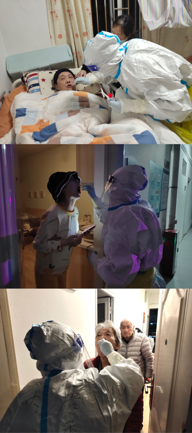 社區(qū)黨委班子成員帶領(lǐng)采樣醫(yī)務(wù)人員、社區(qū)工作人員、黨員志愿者組成“流動檢測小分隊”,為老人、孕婦、行動不便等特殊人群提供上門檢測服務(wù)。工作人員協(xié)助老人填寫完整信息,為采樣對象掃粵核酸碼,再按照相應(yīng)的操作流程進(jìn)行核酸采樣,為轄區(qū)居民織牢“防疫保護(hù)網(wǎng)”。