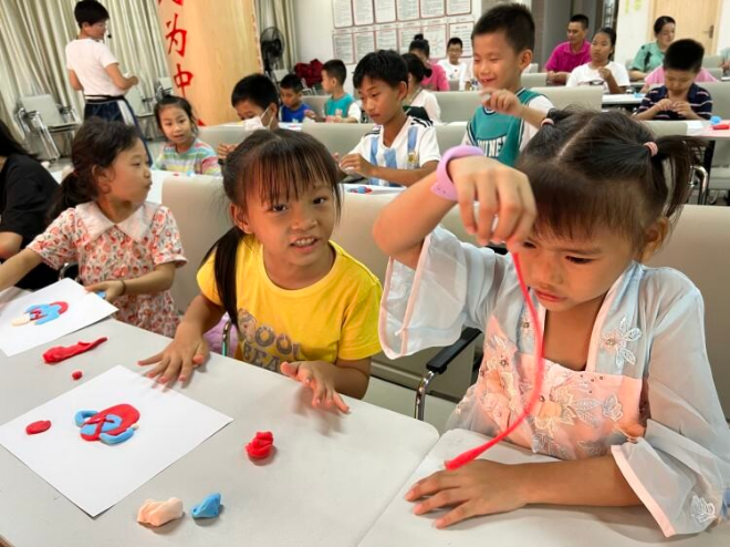 “社區(qū)每年都組織來深與父母團聚的孩子和常住的童青少年一起黨群服務(wù)中心上課?!鄙绻埮握f,除了延續(xù)上半年的小小講解員及朗誦培訓,今年暑期定期還會加入一些活動。例如手工,鍛煉小朋友的動手能力和專注度;親子安全培訓,講課與實操相結(jié)合,向居民普及相關(guān)知識。
