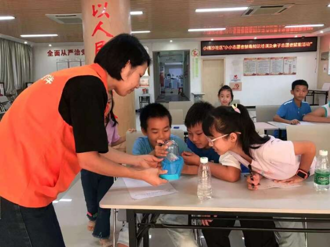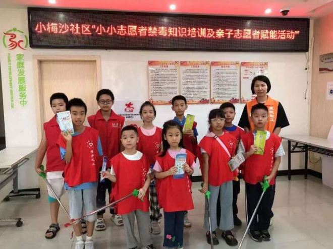 據(jù)悉,小梅沙社區(qū)“伴你成長(zhǎng)”親子志愿者隊(duì)伍是梅沙街道“一社區(qū)一品牌”禁毒項(xiàng)目之一,“小小志愿者們經(jīng)常利用暑假和周末‘沉浸式’向居民群眾講解識(shí)毒、防毒、拒毒的知識(shí)”。社工肖帶發(fā)說,希望孩子們能在做志愿者的時(shí)候,潛移默化的助人助己樹立健康的觀念,自覺遠(yuǎn)離毒品。