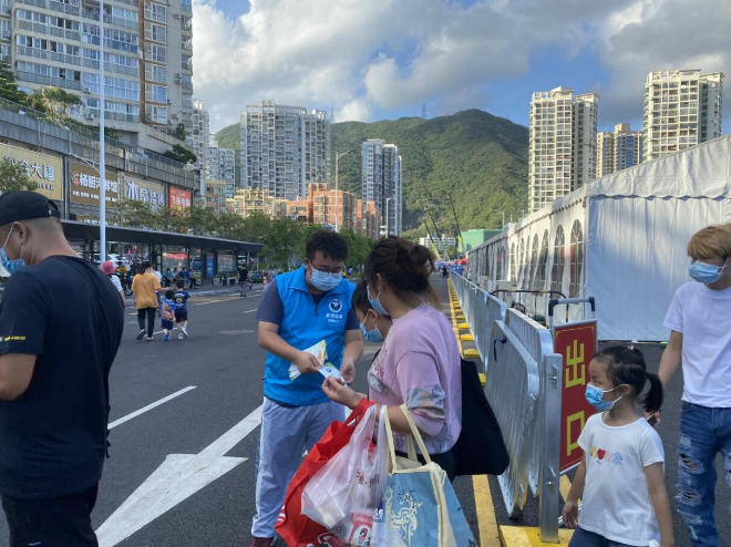 619日,鹽田街道綜治辦禁毒社工堅(jiān)持禁毒與防疫相結(jié)合的工作模式,聯(lián)合社區(qū)治安專員到各社區(qū)核酸檢測(cè)臨時(shí)點(diǎn)開(kāi)展“疫情防控不放松,禁毒宣傳不打烊”禁毒宣傳活動(dòng)。