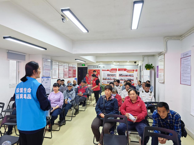 活動(dòng)中,禁毒社工派發(fā)禁毒宣傳折頁(yè),擺放毒品仿真樣品,通過(guò)PPT圖文講解的方式,普及毒品知識(shí)、吸毒危害和毒品預(yù)防技巧,以及禁毒相關(guān)法律法規(guī),重點(diǎn)介紹《深圳經(jīng)濟(jì)特區(qū)禁毒條例》于2024年10月30日通過(guò),自2025年1月1日起施行,引導(dǎo)從業(yè)人員積極學(xué)習(xí)禁毒條例,自覺(jué)遵守法律法規(guī),發(fā)現(xiàn)疑似涉毒的行為,積極向公安機(jī)關(guān)舉報(bào)。