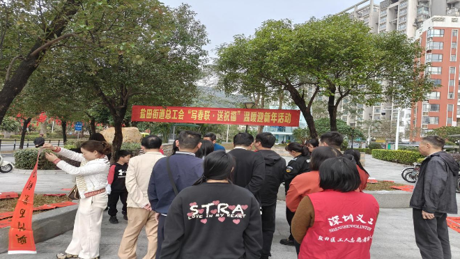 新春佳節(jié)將至,為弘揚中華優(yōu)秀傳統(tǒng)文化,豐富職工群眾的精神文化生活,營造歡樂祥和的節(jié)日氛圍,1月21日至23日,由鹽田街道總工會主辦,明珠社區(qū)工聯(lián)會和東海社區(qū)工聯(lián)會承辦的“寫春聯(lián)·送祝?!睖嘏履昊顒诱絾印;顒友堓爡^(qū)書法老師,為一線職工群眾寫春聯(lián)、送祝福。