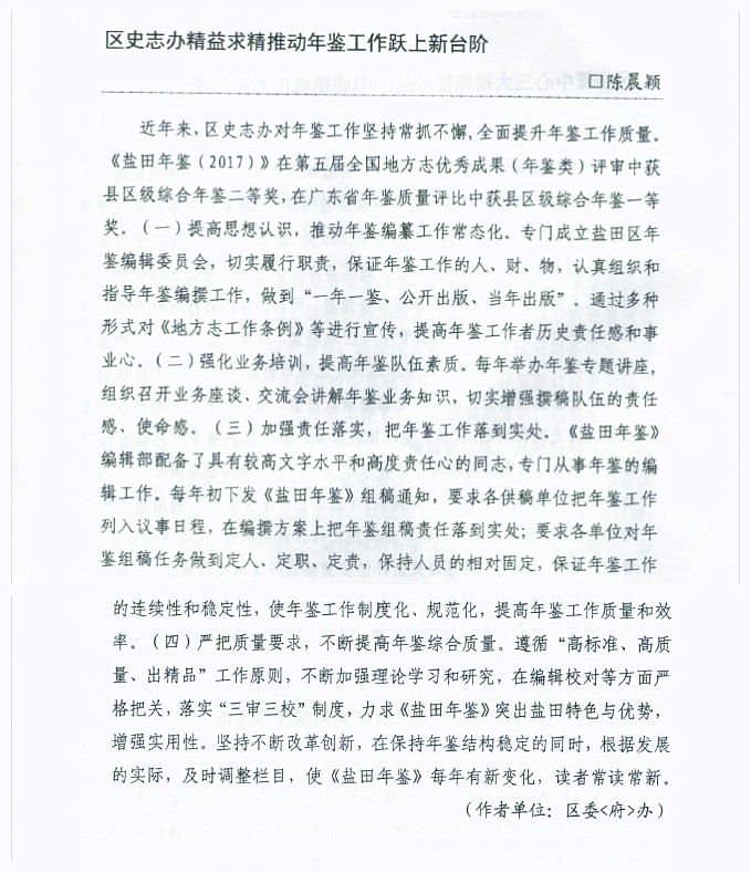 區(qū)史志辦精益求精推動(dòng)年鑒工作躍上新臺(tái)階(刊于<鹽田信息>周刊第27期)
